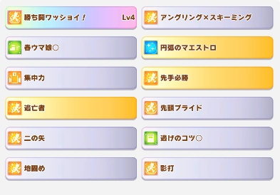 スキルはこんな感じでコーナ系と回復が取れなかったです