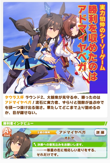 一応ドトウちゃんが上記に値して中盤スキルほぼないのですが結構勝ってくれまして40戦中の勝率は75%です。