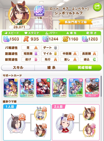 一応評価点目的で育成した子なので…イベント用にするとFいくか微妙です。